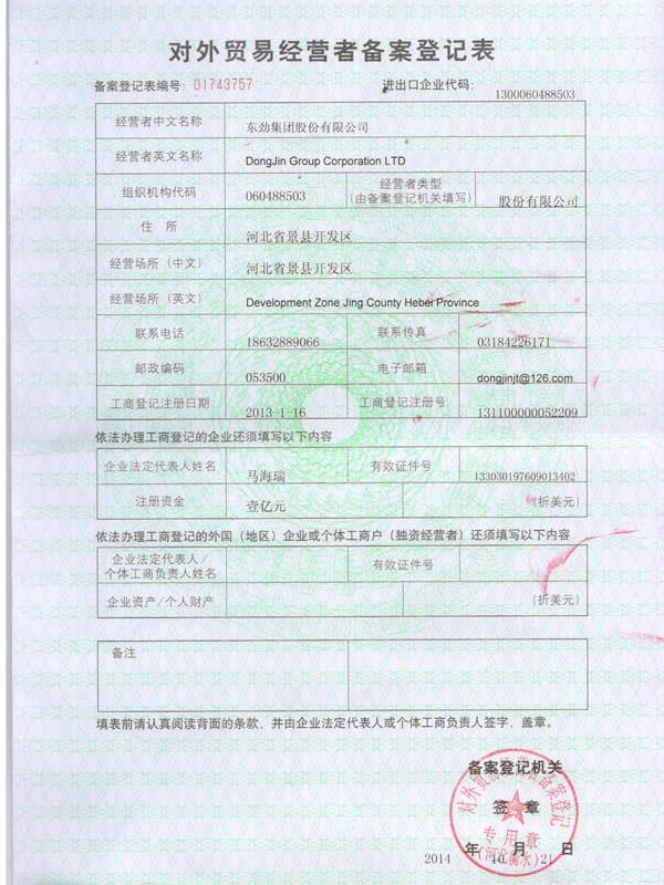 • 對外貿易備案證